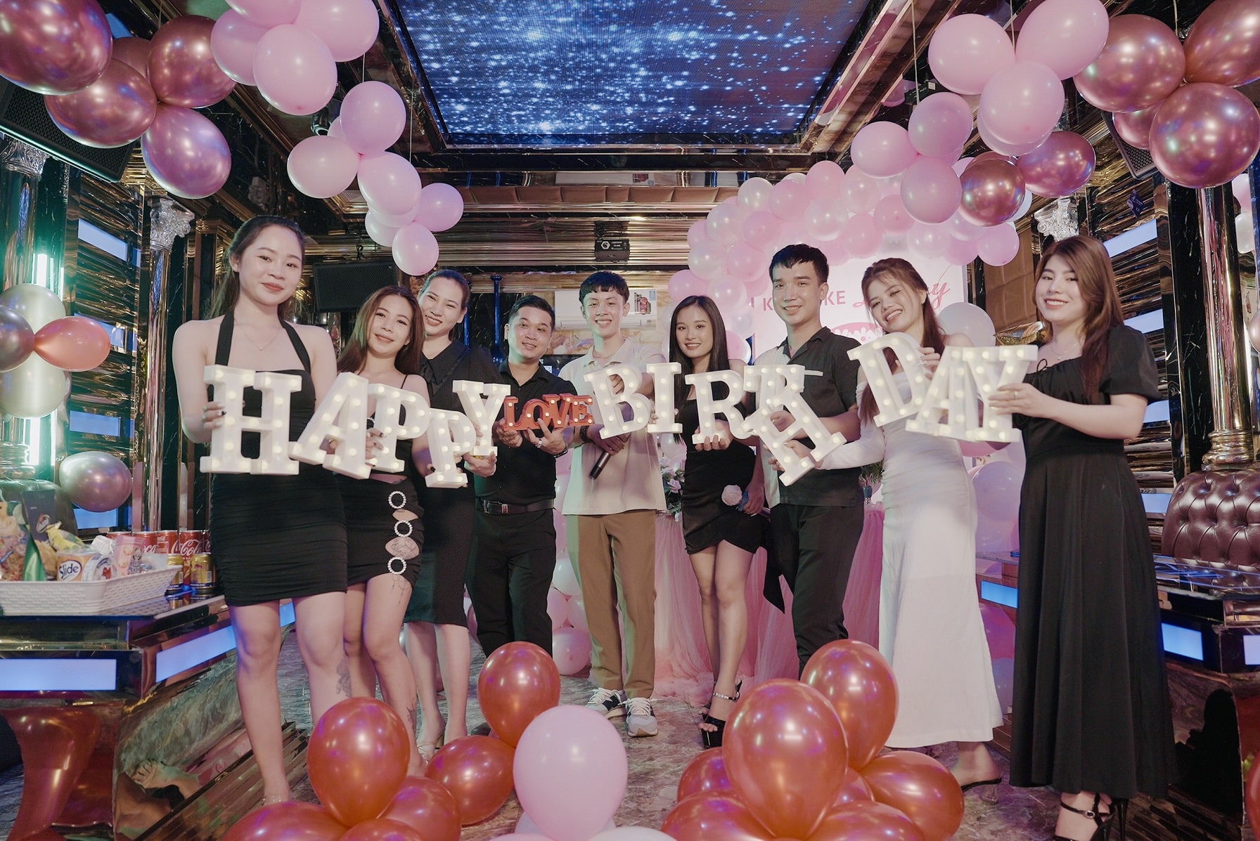 Karaoke với không gian mới lạ, sang trọng bắt mắt, phong cách trang trí phòng hiện đại, độc đáo. Dàn âm thanh hiện đại chuẩn Quốc tế và menu thức ăn, đồ uống phong phú, nhiều món ăn hấp dẫn, mức giá phải chăng cùng nhân viên phục vụ chuyên nghiệp, nhiệt tình, tận tâm chắc chắn sẽ làm hài lòng